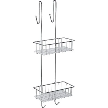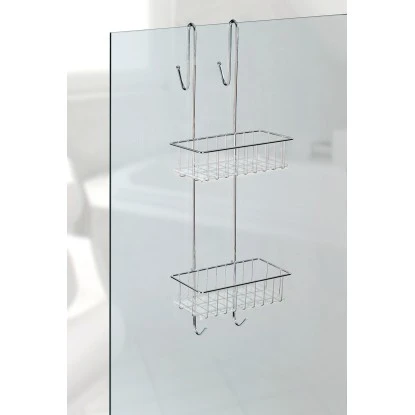 Es bietet einen sicheren Stand der Badutensilien durch transparente Kunststoffeinlagen und besitzt auf der Vorder- und Rückseite jeweils 2 praktische Haken zum Aufhängen von z.B. Handtüchern oder Waschhandschuhen.