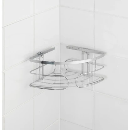 Die platzsparende Eckablage bietet die ideale Stauraumnutzung für jedes Badezimmer. Besonders geeignet ist die Ablage zur Aufbewahrung von Bad- und Kosmetikartikeln. Durch die praktische, transparente Kunststoffeinlage stehen alle Accessoires stets sicher und griffbereit. Im Lieferumfang sind Schrauben und Dübel zur Wandbefestigung enthalten.