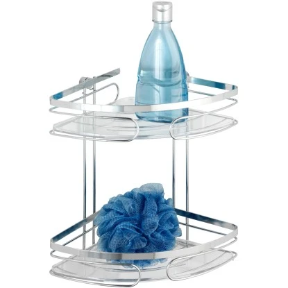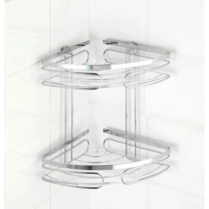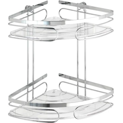 Das platzsparende Eckregal bietet die ideale Stauraumnutzung für jedes Badezimmer. Besonders geeignet ist das praktische Regal mit seinen zwei Ablagen für Duschgel- und Shampoo-Flaschen, Schwämme und vieles mehr. Durch die praktischen, transparenten Kunststoffeinlagen stehen alle Duschutensilien stets sicher und griffbereit. Im Lieferumfang sind Schrauben und Dübel zur Wandbefestigung enthalten.