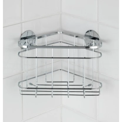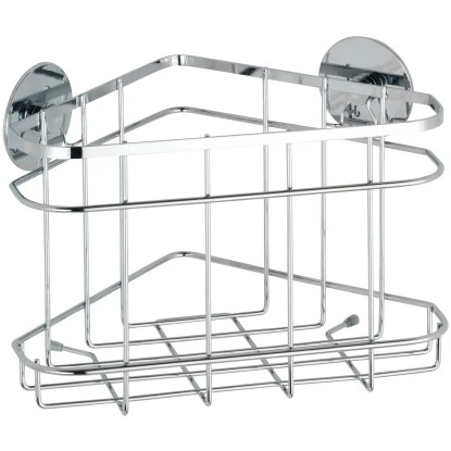 Das Wenko Eckregal Turbo-Loc überzeugt mit edlem Design aus hochwertigem, glänzendem und rostfreiem Edelstahl. Die Maße (B x H x T) betragen 22,5 cm x 17,5 cm x 15,5 cm.