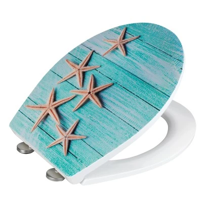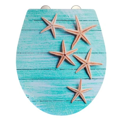 Der hochwertig verarbeitete WC-Sitz Mediaster aus antibakteriellem Duroplast zeichnet sich durch seine ausgefallene Oberfläche mit Relief-Haptik aus. Die niedlichen Seesterne werden zum Blickfang in jedem Bad und Gäste-WC. Das antibakterielle Duroplast sorgt für mehr Hygiene im Bad. Neben dem angenehmen Sitzkomfort ist der Toilettensitz auch mit weiteren, praktischen Zusatzfunktionen ausgestattet. So gehört lautes Deckelknallen mit der integrierten Easy-Close-Absenkautomatik der Vergangenheit an. Der Toilettendeckel schließt sanft und leise. Einfach schwerelos. Durch das langsame Absenken wird auch ein Einklemmen von Fingern und Kleidung verhindert. Seine 1-Knopf Fix-Clip Hygienebefestigung aus rostfreiem Edelstahl ermöglicht eine schnelle Montage und Reinigung, da der komplette Sitz einfach wieder abnehm- und aufclipsbar ist. Seine Befestigung ist flexibel einstellbar passend für handelsübliche WCs. Ein praktischer Wandpuffer ist im Lieferumfang enthalten. Ein zusätzlicher Gummieinsatz, der mit der Fix-Clip Befestigung auf der WC-Schüssel angebracht wird, verhindert das Verrutschen des WC-Sitzes.Der schöne WC-Sitz Mediaster ist aus Duroplast hergestellt. Duroplast WC-Sitze werden in einem aufwendigen thermomechanischen Verfahren hergestellt und vereinen hochwertige Qualität und Funktionalität. Daher eignet er sich auch sehr gut zum Einsatz auf Toiletten mit erhöhtem Publikumsverkehr, wie z.B. in Geschäften, Praxen oder Büros, da er sehr kratzfest, bruchsicher und strapazierfähig ist. Die hygienische Oberfläche ist zudem leicht zu reinigen.