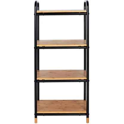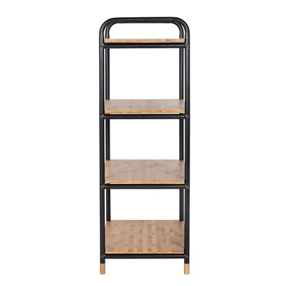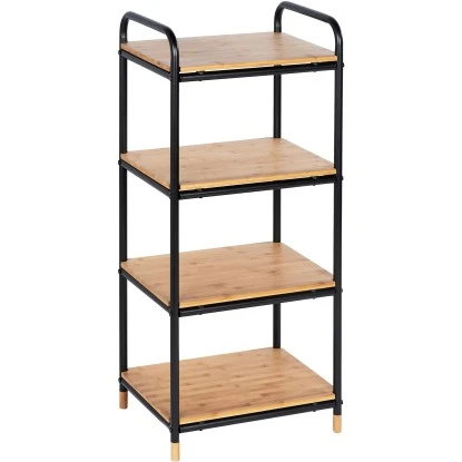 Der stabile Rahmen aus schwarzem, pulverbeschichtetem Metall schafft den gewünschten Kontrast. Das moderne Standregal Loft bietet mit seinen vier Regalböden viel Platz für Handtücher, Bücher, Küchenutensilien, Accessoires und Dekoration. Egal, wo Sie das angesagte Haushalts- und Badregal platzieren, ob im Bad, Schlafzimmer, Flur, in der Küche oder im Wohnzimmer-das praktische Regal ist immer ein Blickfang und vielseitig einsetzbar.