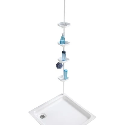 Das moderne Teleskop-Regal ist universell einsetzbar, in der Duschkabine, in der Badewannenecke, oder im Badezimmer. Es bietet mit vier Ablagekörben genügend Abstellmöglichkeiten für Ihre Badutensilien. Die Ablagen verfügen alle über strukturierte Böden und Ablaufschlitze.