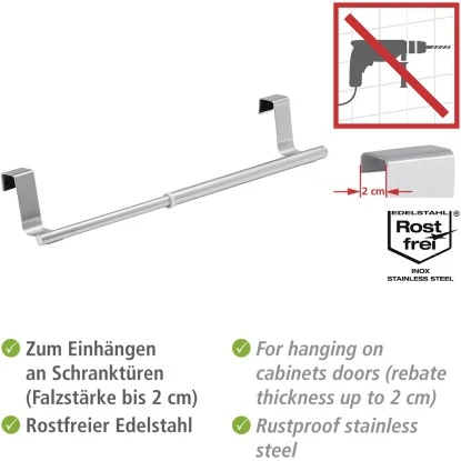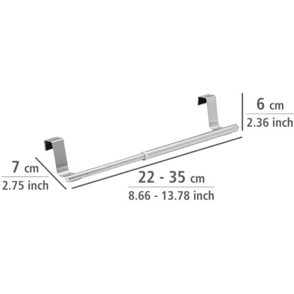 Die Wenko Tür-Handtuchstange Teleskop aus rostfreiem Edelstahl bietet Platz zwischen 22 und 35 cm. Trocken- und Putztücher sind immer griffbereit und können ohne langes Suchen benutzt werden.