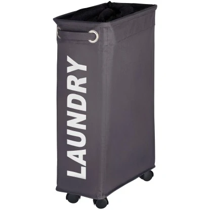 Mit dem Wäschesammler Corno in Grau lassen sich ab sofort selbst die Leerräume neben Schränken und Regalen hervorragend ausnutzen. Der platzsparende, schmale Wäschesammler ist dabei aus hochwertigem Polyester gefertigt und unkompliziert durch seine vier Rollen verschiebbar. Durch die Sichtschutzabdeckung kann die unschöne Schmutzwäsche gelungen versteckt werden.